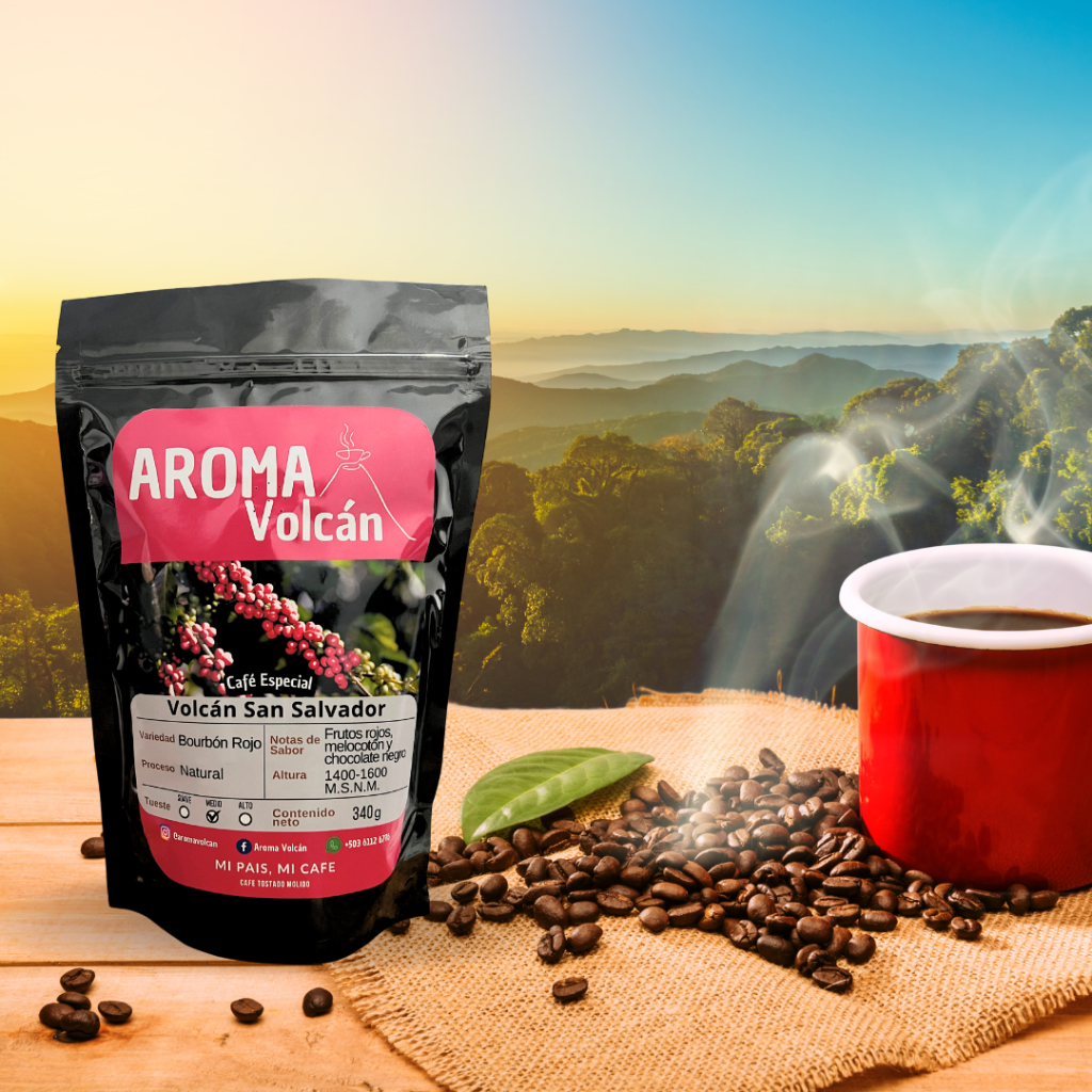 Café Corona: Cultivado en región Palma, Chalatenango a una altura de 1250 msnm, variedad bourbon, tueste medio oscuro presencia de notas achocolatadas.