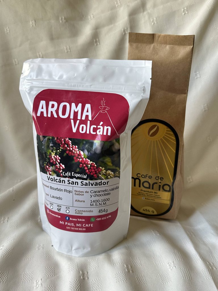 Café Corona: Cultivado en región Palma, Chalatenango a una altura de 1250 msnm, variedad bourbon, tueste medio oscuro presencia de notas achocolatadas.